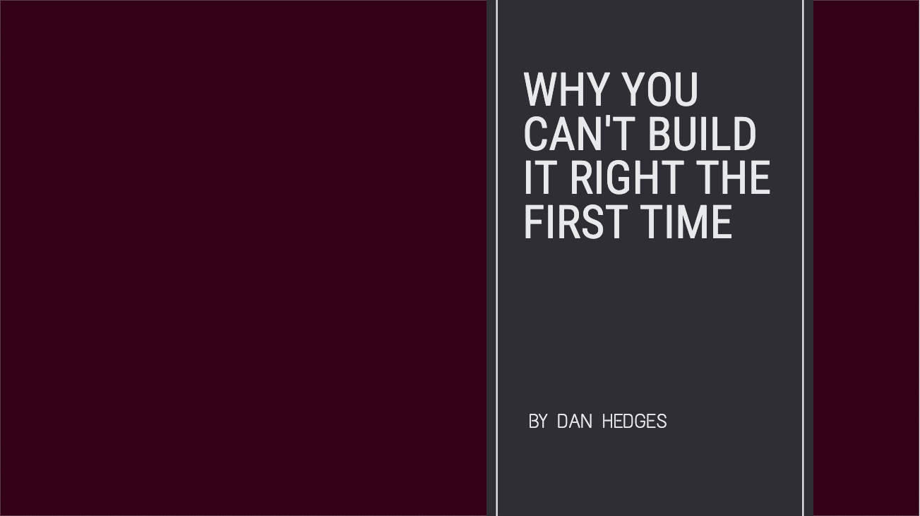 During my time as an engineer, and maybe even more so as a product person, I have heard (and occasionally thought) “Why are we having to change this? we should have just done the job right the first time!”.